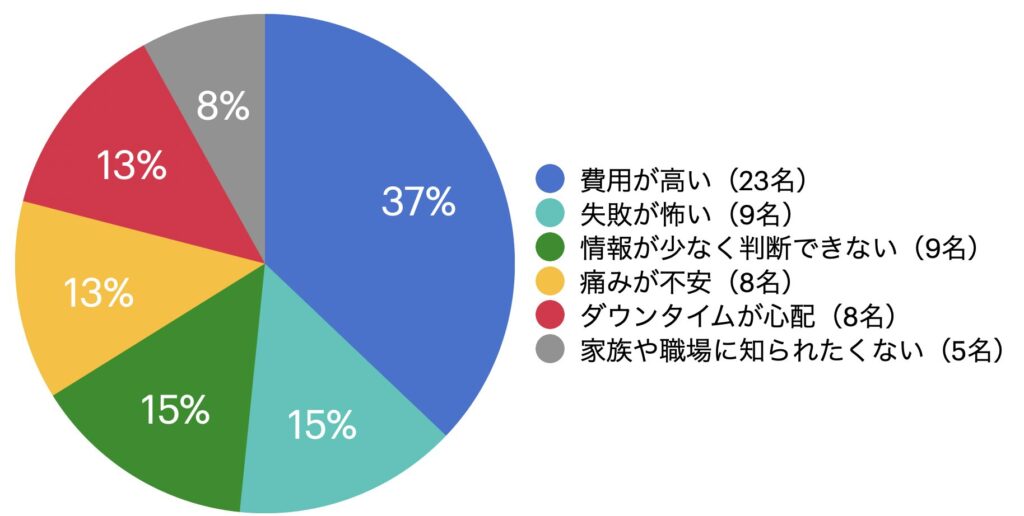 50名中6名(12%)が「ダウンタイム」を理由に迷っていました。